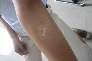 2、局限型白癜风症状的白斑内毛发可变白或正常,但皮肤无其它变化,亦无自觉症状。由于缺乏色素的保护作用,白斑曝晒后易出现潮红、红斑及水疱,有时也会感觉到患部处有阵阵的刺痛感。