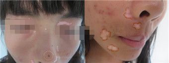 【患者在我院治疗两个疗程后,面部白斑完全恢复正常肤色】
