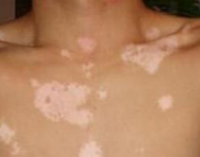 胸部白癜风皮损呈纯白色圆形或不规则的脱失斑,表面光滑,边界清楚,边缘色素增多,患处的毛发可正常,也可变白。此病一般不痛不痒,如果白斑面积较大,在夏日暴晒后,偶尔有些烧灼感。变白的皮肤对日光较正常皮肤敏感,稍晒太阳即发红。