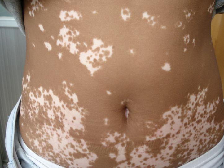 白癜风是一种常见多发的色素性皮肤病。该病以局部或泛发性色素脱失形成白斑为特征,是一种获得性局限性或泛发性皮肤色素脱失症,是一影响美容的常见皮肤病,易诊断,治疗难。白癜风是后天性因皮肤色素脱失而发生的局限性白色斑片,使得局部皮肤呈白斑样。医学上通常把这种病变叫色素脱失。白癜风发病的原因之一是免疫功能失调,在部分患者血中可测出多种抗体。而且这种疾病还能扩散,腰间长白癜风能扩散到脸上。推荐阅读:腰部白癜风患者运动时需注意的小细节